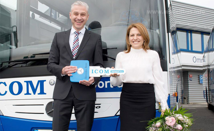 Das tschechische Verkehrsunternehmen ICOM transport hat zwölf Mercedes-Benz Intouro in Euro VI Ausführung in den Dienst gestellt. Dabei handelt es sich um die erste größere Euro VI-Auslieferung auf dem tschechischen Markt. Die zwölf Intouro werden künftig im „Mittelböhmen Linienverkehr“ Fahrgäste befördern. Die Busse mit hochmoderner Technik wurden im Rahmen des Förderprogramms „Stärkung ökologischer Verkehrsträger in der Region zur Minimierung negativer Umweltauswirkungen, Förderung von Verkehrssicherheit und Komfort sowie die Schaffung von Barrierefreiheit im ÖPNV“ angeschafft. Deshalb sind die zwölf Intouro jeweils an einer Einstiegstür auch mit einem integrierten Hublift mit 1.380 mm Breite ausgestattet. Im Innenraum finden 50 Fahrgäste auf Inter-Star-Eco-Sitzen je einen Platz. Angetrieben werden die zwölf Intouro durch den BlueEfficiency Power-Motor OM 936 mit 220 kW. Das Hochboden-Fahrzeug Intouro ist speziell für Überlandverkehre wie den Überland- und Schulbus-Linienverkehr sowie Werksverkehr ausgelegt. Mit über 6000 verkauften Einheiten ist diese Fahrzeug-Baureihe ein. Der Werk Hosdere nahe Istanbul bei der türkischen Daimler Tochtergesellschaft Mercedes-Benz Türk A.S. gebaute Intouro hat sich mittlerweile zum Erfolgsmodell im Überlandverkehr gemausert, weil dieses Fahrzeug ein hervorragendes Preis-/Leistungsverhältnis hat, so verschiedene Kunden. Die Zusammenarbeit zwischen Mercedes-Benz und ICOM im Omnibus-Segment besteht seit 1998. In den zurückliegenden 15 Jahren hat das Unternehmen insgesamt 1.000 Omnibusse geordert. Der Fuhrpark von ICOM umfasst heute über 700 Omnibusse vom Typ Mercedes-Benz Intouro. Zudem betreibt das Unternehmen insgesamt 300 Lastkraftwagen mit Stern für nationale und internationale Verkehre. |