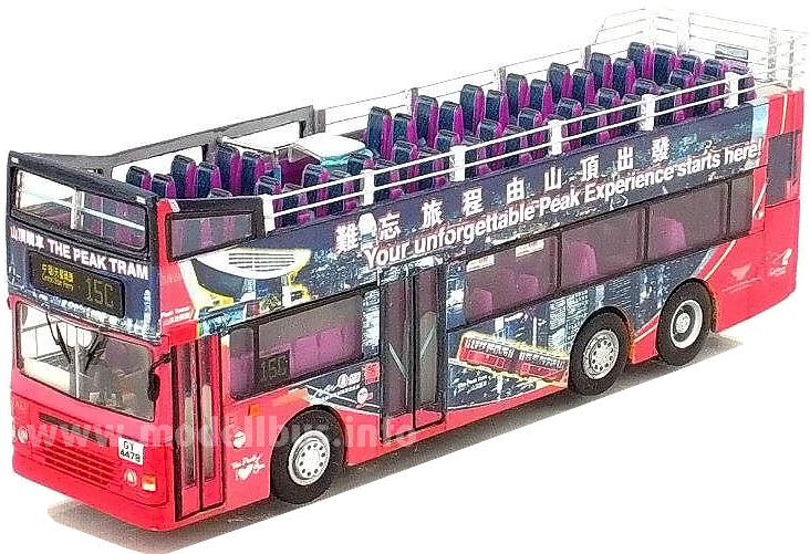 Auf Basis eines Doppeldecker-Modellbusses von Drumwell hat Dream Bus Model einen Sightseeing-Bus erstellt, wie Graham White mitteilt. Vorbild des Modellbusses ist ein Dennis Condor mit Duple Metsec-Aufbau, der in den 90er Jahren in Hong Kong im Einsatz war - fast 100 Doppeldecker gehörten seinerzeit zum Fuhrpark der China Motor Bus. Kenner brtitischer Doppeldecker in Hong Kong - wie Graham White - wissen zu berichten, dass die Fahrzeuge in drei Lieferungen in Dienst gestellt wurden. Die geschlossenen Liniendoppeldecker lassen sich auch von einem Laien ganz einfach anhand der oberen Seitenscheiben differenzieren: Ab der Fuhrparknummer DA1-DA56 hatten sie zunächst kleine, in Gummi eingefasste Schiebefenster, ähnlich wie die in Großbritannien ausgelieferten Fahrzeugen. Die zweite Serie, im Fuhrpark ab DA57-82 gelistet, hatte keine Fenster zum Öffnen. Die Fenster waren aber noch klassisch mit Gummidichtungen verbaut. Bei der letzten Lieferung mit der Fuhrparknummer DA83-DA92, wurde die Verglasung verklebt. Beim umgebauten Modellbus sind diese Details nicht mehr zu erkennen, denn es gibt ja sozusagen nur noch den vorderen Windlauf des Oberdecks. Die Doppeldecker von China Motor Bus gingen 1998 in den Fuhrpark von New World First Bus, als CMB die Fahrleistung auf den Linien nicht wieder für sich gewinnen konnte. Vielen Dank an Graham White für den Hinweis. Verschiedenste Modellbusse mit Vorbild Hong Kong sind im Onlineshop von Jotus erhältlich. Seit 1998 ist das Team von Jotus in Hong Kong weltweit als Groß- und Einzelhändler von Modellfahrzeugen aktiv. Das Angebot umfasst interessante Modellbusse asiatischer Vorbilder in unterschiedlichsten Maßstäben. |