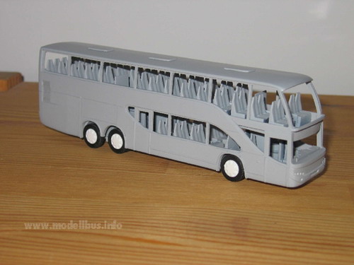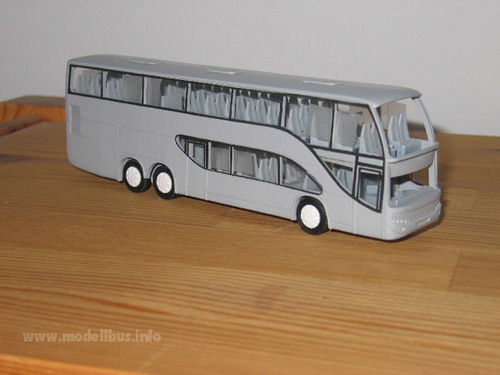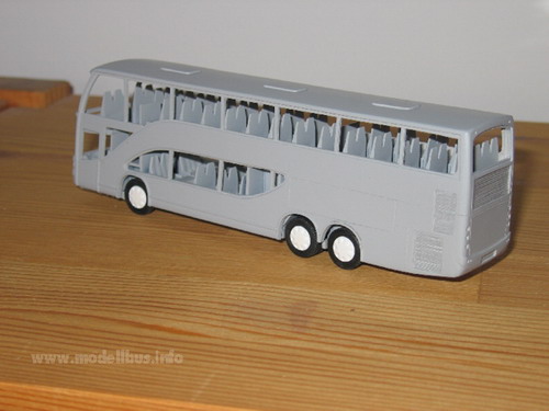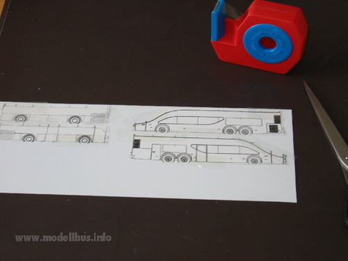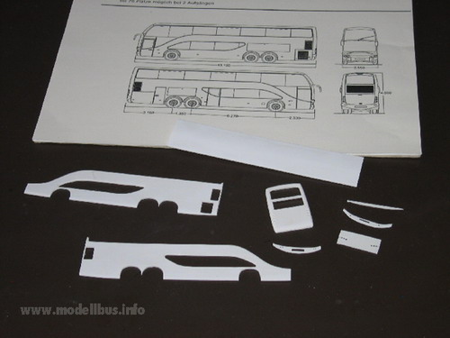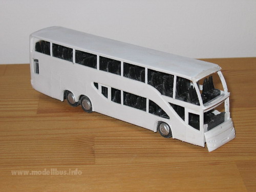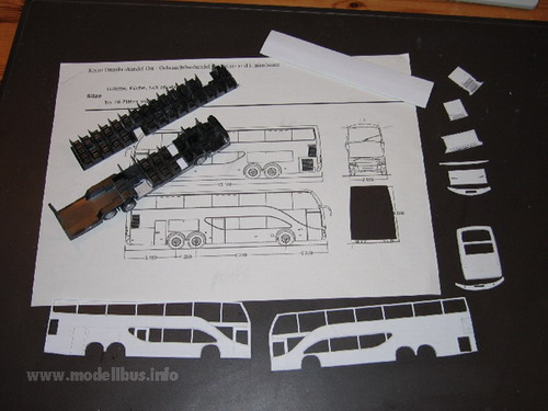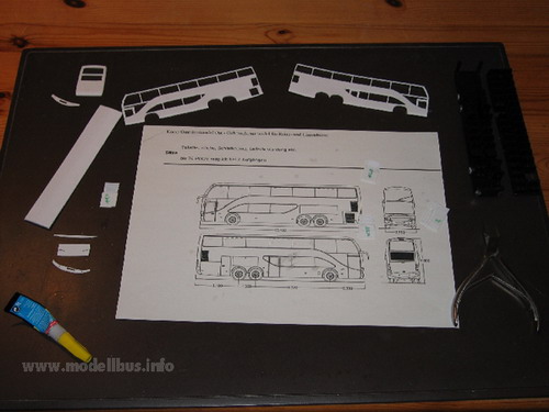 Es kommt immer noch oft vor, das man einen faszinierenden Bus sieht, den man allerdings leider nicht als Modell im Laden kaufen kann und auch kein Kleinserienherstellen das Modell im Angebot pflegt. Die einfache Variante ist dann, wenn man ein fertiges Modell findet, das man in das gewünschte Modell umbauen kann. Sind aber weit und breit keine Groß- oder Kleinserienmodelle in Sicht, aus denen man das gewünschte Modell herstellen kann, bleibt irgendwann nur noch die Möglichkeit das Modell "from scratch" zu bauen, also ohne Grundlage eines anderen Modells. Jetzt sind natürlich alle Möglichkeiten vorhanden das Modell zu fertigen. Die Wahl des Materials ist zum Beispiel entscheidend für die Vorgehensweise. Ich habe mich für Polystyrolplatten oder ABS-Platten (Thermoplastik) entschieden - es lässt sich leicht ver- und bearbeiten, kleben und lackieren und ich habe aufgrund meiner Erfahrung als Jugendlicher mit den klassischen Spritzgussmodellen, wie von Revell oder Airfix, schon gewisse Erfahrung mit dem Material gesammelt. Ein anderer wir da vielleicht auf Messing zurückgreifen, weil er beruflich damit zu tun hat, oder Holz... Nun, ich habe hier eine Auswahl von Plastikplatten in 0,3mm, 0,5 mm und 1 mm dicke, dazu noch Evergreen Profile, wo man z. b. Polysytrolstreifen in den Abmessungen 0,5 mm x 0,25 mm bis zu 6,4 mm x 6,4 mm bekommen kann. Auch verschiedene andere Profile sind erhältlich. Das erleichtert das Basteln erheblich, da hier immer exakt bemaßte Bauteile zur Verfügung stehen, die man sehr gut am Modell einsetzten kann. Das Vorbild für ein Modell ist immer schnell gefunden - schwieriger wird es da eine Zeichnung zu finden, in der das Modell von allen Seiten dargestellt ist. Diese Zeichnung wird auf die richtige Größe - in meinem Fall 1:87 von Vorbild kopiert. Sollte eine gute Zeichnung nicht zu finden sein, muss sie selbst erstellt werden. Vorbildfotos kann man auch nie genug finden. Je mehr und je detailreicher desto besser. Man kann sich nicht vorstellen welche Fragen im Laufe der Bastelei von Fotos beantwortet werden sollen... Anhand der Zeichnung muss ein Teileplan erstellt werden, der die Möglichkeiten des Materials und die Gegebenheiten des Vorbilds einschließen. Die Fragen: "Wie soll die Verglasung eingesetzt werden?", "An welche Stelle wird der Übergang von einen Bauteil zum anderen gesetzt?", und "Aus wie vielen Schichten und aus welchen Material werden die Bauteile aufgebaut?"müssen hier beantwortet werden. An der Stelle wird das Modell, bevor nur ein Schnitt im Material gesetzt ist, voll durchkonstruiert. Hier ist Erfahrung der große Hebel aber natürlich kommt man im Laufe der Arbeiten immer wieder an Punkte, an denen neue Ideen gefragt sind und an denen der Baufortschritt ins Stocken gerät, weil man feststellt, dass es so, wie man sich das vorgestellt hat, nicht klappt..... Die Plastikbauteile bearbeite ich mit einer Pug-Säge, einem Bastelmesser und ein Metalllineal hat sich als sehr wertvoll gezeigt. Auch ein kleiner Handbohrer mit verschiedenen Einsätzen liegt hier. Die Zeichnung des Vorbildes kopiere ich einige Male zeichne meinen Teileplan ein und verwende diesen dann als "Schnittmuster" für meine Bauteile. Die Zeichnung wird einfach mit Tesafilm auf die Plastikplatte geklebt und das Bauteil entsprechend ausgeschnitten. So entstehen eine ganze Reihe von Teilen, die nach mehreren Passversuchen dann zusammengeklebt das rohe Modell ergeben. Die Klebestellen müssen gespachtelt und zusammen mit den Rundungen am Modell verschliffen werden. Hierzu habe ich in meiner Werkzeugkiste einen Spachtelmasse von Revell, ein Zahnarztwerkzeug zum Spachteln, einen Schleifklotz (selbst gebaut aus einem handlichen Stück Holz auf das ich immer frische Schleifpapiere in den unterschiedlichen Körnungen mit Reißnägeln fixiere) Schleifpapiere ohne Block und einen Satz Schlüsselfeilen. Zum gravieren von Klappen und Zierrat finde ich noch eine Reisnadel in meiner Werkzeugkiste. Für die Inneneinrichtung und das Fahrgestell hat in diesem Fall ein Großserienmodell als Spender funktioniert. Natürlich kann man diese Teile auch selbst anfertigen - muss man aber nicht. Als Einsatz für Achsen haben sich Aluröhrchen bewährt, die im gut sortierten Modellbaugeschäft zu bekommen sind. Bei dem spanischen Ayats Bravo 1 hat mich der italienische Importeur auf das Vorbild gebracht und mir auch fleißig Fotos und Zeichnungen zur Verfügung gestellt. Das imposante Fahrzeug kann man auch in Europa sehr oft sehen, wobei ich allerdings nur von zwei in Deutschland zugelassenen Fahrzeugen weiß. Ich habe mich dazu entschlossen, das Modell mit einer Außenwand in zwei Schichten zu konstruieren, um dann die Verglasung von außen einsetzen zu können. Es entstand also jeweils eine innere Seitenwand aus 1 mm Plastikplatte und eine äußere Wand aus 0,5 mm Plastik. Die Fensterstreben wurden aus Evergreen Profilteilen gebaut, ebenso wie die Kühlergitter. Die Inneneinrichtung und das Fahrgestell wurden von einem AWM Setra Doppeldecker entlehnt. Der Ayats Bravo 1, der in den Bildern gezeigt ist, ist nun im Programm des Kleinserienherstellers MEK. (C) www.modellbus.info |