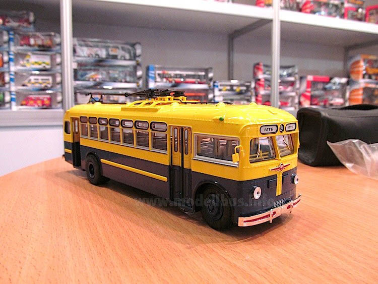 Der russische Anbieter setzt auf den Omnibus und kann eine reichhaltige Modellpalette nach Vorbildern aus seinem Herkunftsland anbieten. Als hochwertige Kunststoff-Spritzgussmodelle im Maßstab 1/43 gibt es die vom Automobilwerk Lwow ab Ende der 50er Jahre produzierten LAZ 695 und 695 B. Während der erste über einen Sechszylinder-Ottomotor verfügt, hat der zweite, an der Dachhutze erkennbar, einen luftgekühlten Dieselmotor im Heck sitzen (der Buchstabe B bedeutet den Anfangsbuchstaben des russischen Wortes für "Luftkühlung"). Außer als Stadtbus gab es ihn auch als Vorortbus mit 35 Sitzplätzen, als Überlandbus mit 29 Sitzpätzen sowie als Reisebus. Alle Varianten werden auch im Modell angeboten. Die folgenden Modellbusse sind Diecast-Modelle, ebenfalls in 1/43. Den Anfang macht ein dreiachsiger Yaroslav A-2 von 1932 mit der passenden Bezeichnung „Gigant“. Des Weiteren zwei Busse, bei denen ganz offensichtlich amerikanische Fahrzeuge als Vorbild Pate standen, zum einen der Stadtbus NATI-A von 1938 und zum anderen der Trolleybus MTB 82D, der von 1947 bis 1961 gebaut wurde. Die Vorderräder sind lenkbar, die Türen lassen sich öffnen und als besondere Raffinesse lassen sich die Stromstangen wie beim Original über Federn heben und senken sowie seitlich schwenken! |